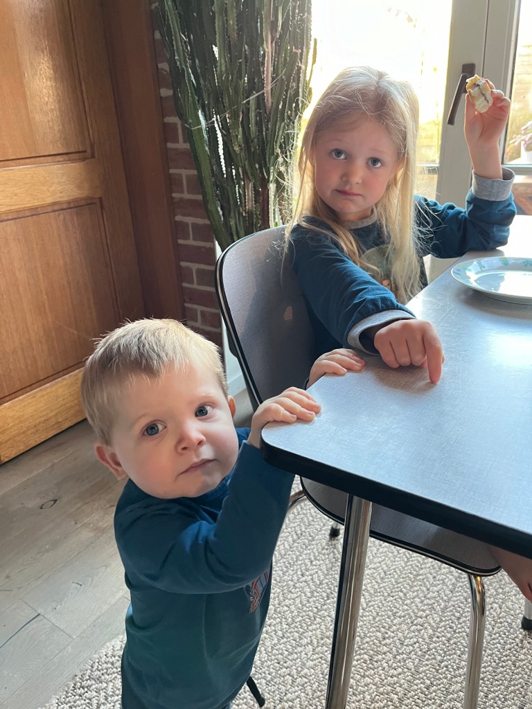 Geen foto van onze omelet deze keer, maar wel een foto van twee brave kindjes die bij ons waren dit weekend.